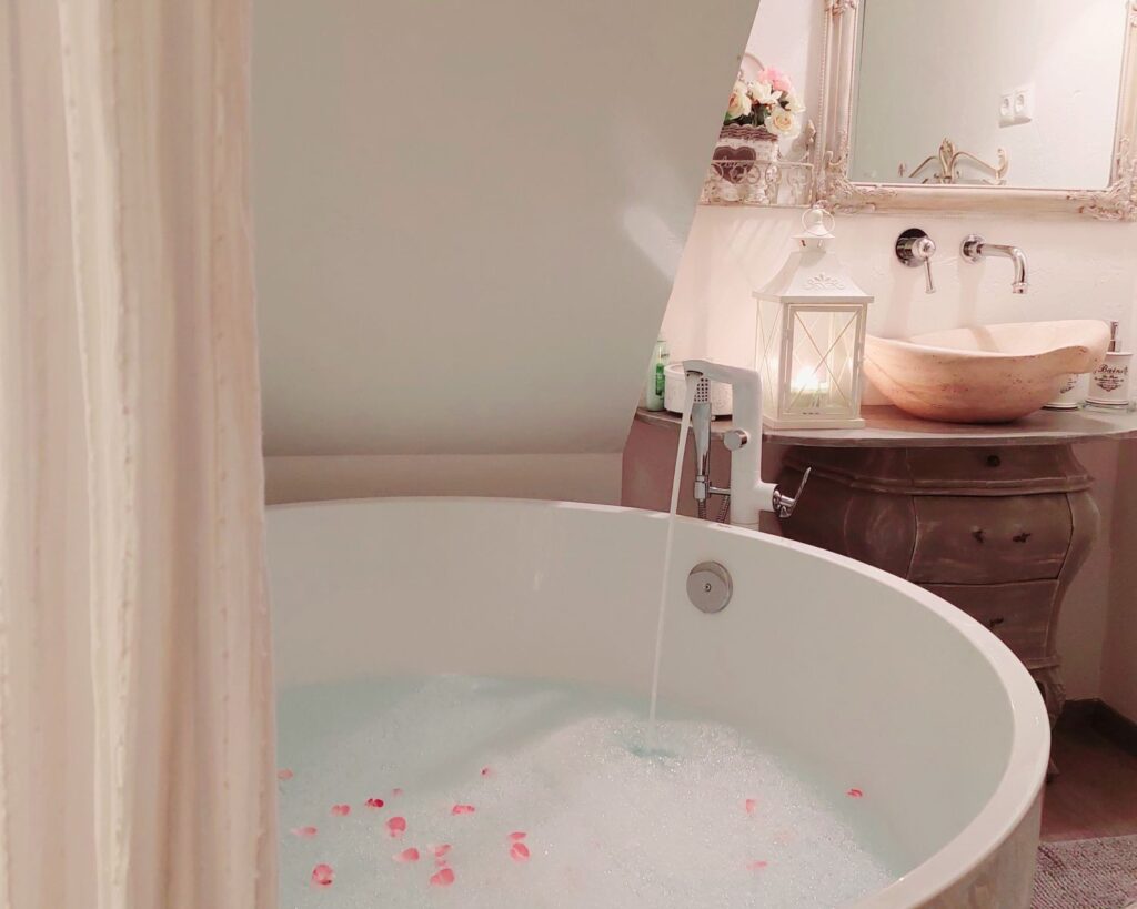 Fürdőszoba: Szabadon álló fürdőkád a szobában